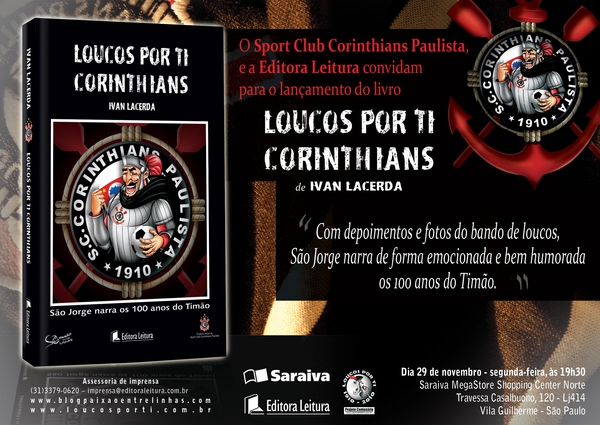 Em comemoração ao Centenário corinthiano, a editora Leitura lança no dia 29 de novembro às 19h30, o livro Loucos por Ti Corinthians, que tem como narrador dos 100 anos, São Jorge, o santo padroeiro da Fiel.