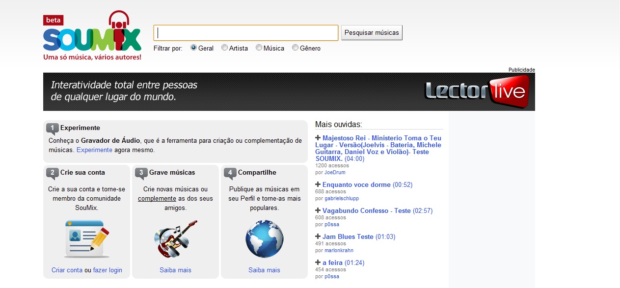 Músicos de todo o Brasil que buscam se interagir com o pessoal da área, para fazer um som legal e que mobilize várias pessoas para promover seu trabalho, vocês já podem fazer isso sem se cadastrar em sites gringos ou postar suas canções nas redes sociais convencionais, como Facebook, Orkut, Hi5 …