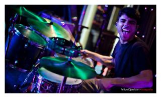 GA: Talvez o problema seja que existem vários ritmistas que se julgam bateristas. O baterista é músico e deve ter noção da música como principal elemento para se criar uma linha de batera e não colocar tudo que estudou quando está tocando. Ter um tempo preciso também é obrigação deste. Então acho que a dificuldade é de achar bateristas que estudam e que tenha consciência do que uma música pede.