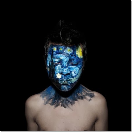 O estudante americano Andy Alcala teve a ideia de fazer arte de uma forma diferente, pintou seu rosto com imagens de quadros de Van Gogh, Andy Warhol, Pollock e Piet Mondrian, fazendo um auto-retrato de obras de arte famosas.