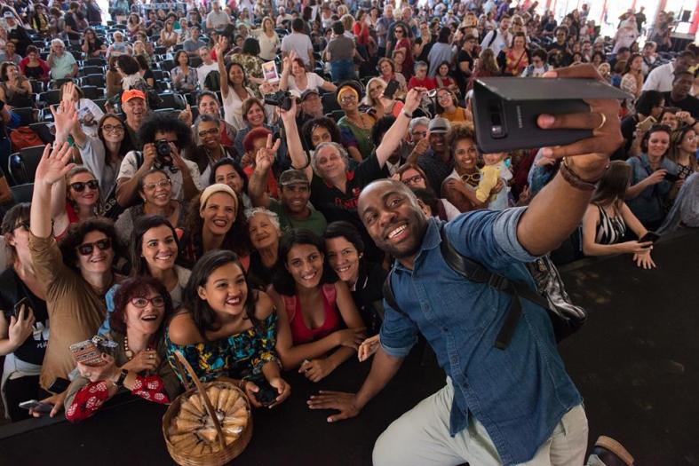 Lázaro Ramos (um dos convidados da festa) com a galera na #Flip2017 – Foto de Iberê Périssé