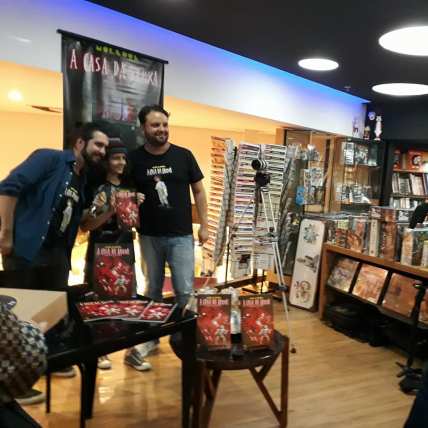 Dan e Marcos, com o Moleque do curta – Leônidas, no lançamento em BH/MG.